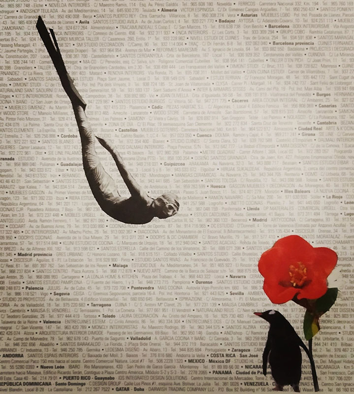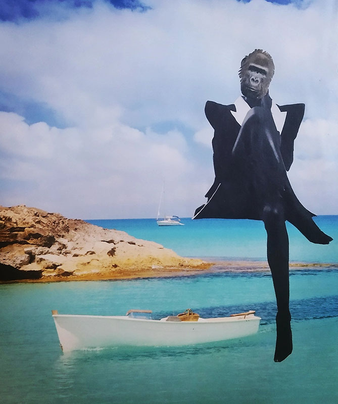 «La técnica del collage permite crear, pensar, imaginar, elaborar, fantasear… Animalizar, humanizar, recrear situaciones, componer recuerdos, expresar, sentir y a la vez crear opinión y transmitir ideas. El collage es sinónimo de improvisación. Crear de la nada nuevos escenarios y personajes abstractos, surrealistas, virtuales y a la vez coloridos, dinámicos, reales, emocionales y llenos de trocitos de historias. Cortar y pegar. Como la vida misma.»