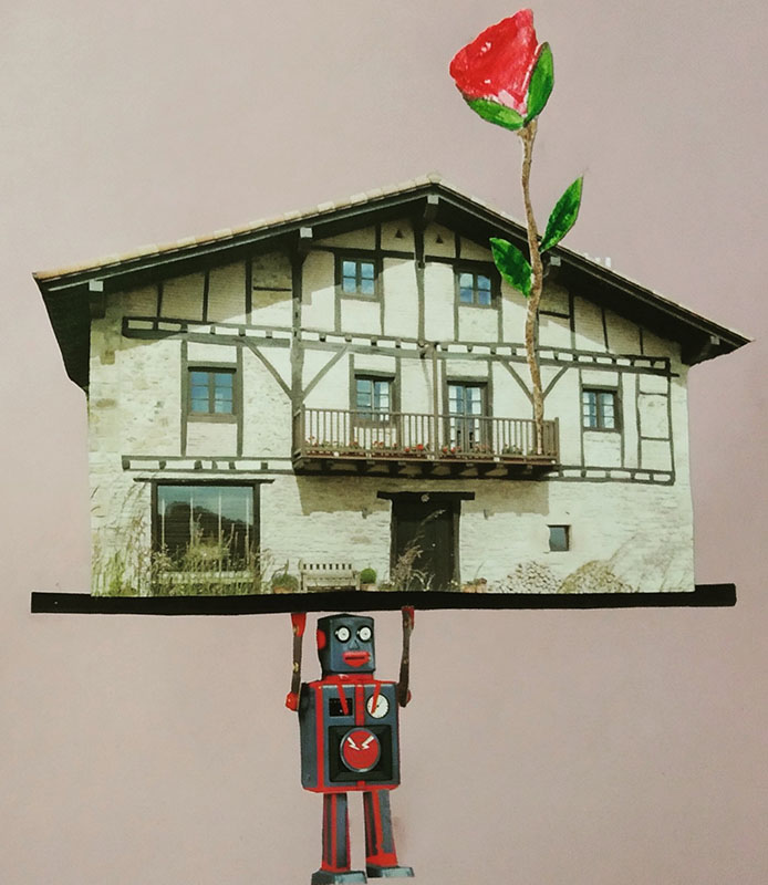 “Collagearen teknikak aukera ematen du sortu, pentsatu, imajinatu,  fantasia egin eta lantzeko… Animatu, gizatiartu, egoerak birsortu, oroitzapenak osatu, adierazi, sentitzeko eta, aldi berean, iritzia sortu eta ideiak transmititzeko. Collagea inprobisazioaren sinonimoa da. Ezerezetik agertoki eta pertsonaia abstraktu berriak sortzea, surrealistak, birtualak eta aldi berean koloretsuak, dinamikoak, errealak, emozionalak eta istorioz beteak. Moztu eta itsatsi. Bizitza bera bezala”.