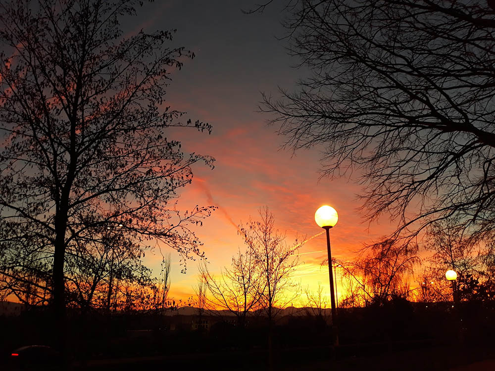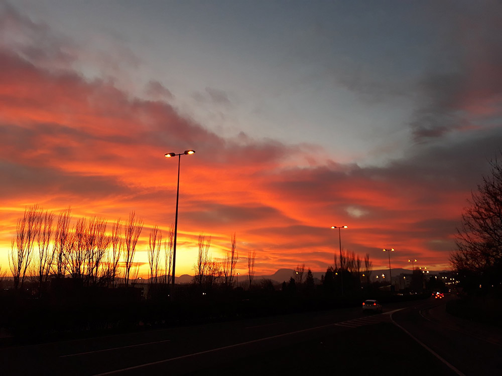 “Argazkiak egunsentian, ilunabarrean eta iluntzean. Egunero gure esku dugu zerua, klik bakar batez. Hain urrun eta hain hurbil. Tonu hori, gorri, laranja eta arrosetan. Urdinak, grisak eta hodei mehatxagarriak. Sua gure buruen azpian”.